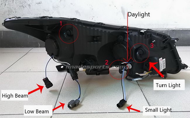โคมไฟหน้า Projector R8 (RS Type) พร้อมวงจรไฟเลี้ยวแบบวิ่ง