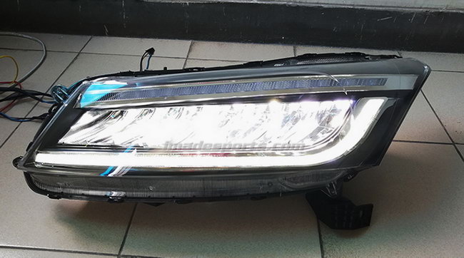 เปลี่ยน Visionใหม่ ให้กับแววตาของ Accord G8 ด้วยโคมไฟหน้า Projector RS Type G8 ที่มี Loop bar light และแผง LED แบบรุ่นปี 2019-2021 option ความสวยงามมากที่สุดตัวนึง ที่ให้ลำแสงตรงและไกลกว่าโคมโป๊ะไฟแบบฮาโลเจนเดิม โดดเด่นด้วย